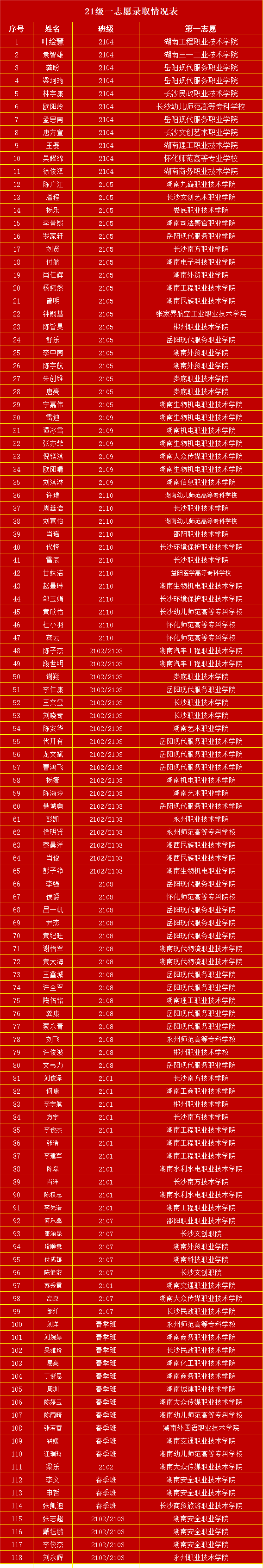 以下为我校第一批录取名单,在此,特向社会各界、全体家长、学生及全校教职员工报喜!