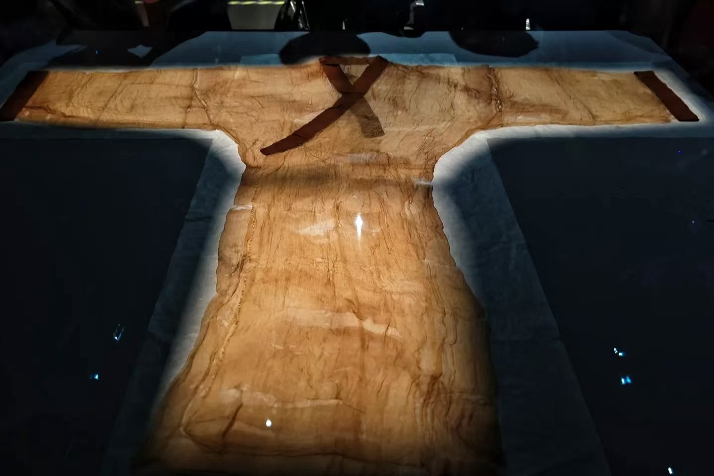 马王堆汉墓展区堪称震撼。千年不腐的辛追夫人遗体引得众人惊叹古人防腐奇术,其身旁随葬的华美丝织品、精致漆器、神秘帛画,打开通往西汉贵族生活的大门。薄如蝉翼的素纱襌衣,轻若烟雾,映射彼时纺织绝技;色彩明艳、构图奇幻的 T 型帛画,以浪漫笔触勾勒天界、人间、地府,展现古人对生死、宇宙独特认知。