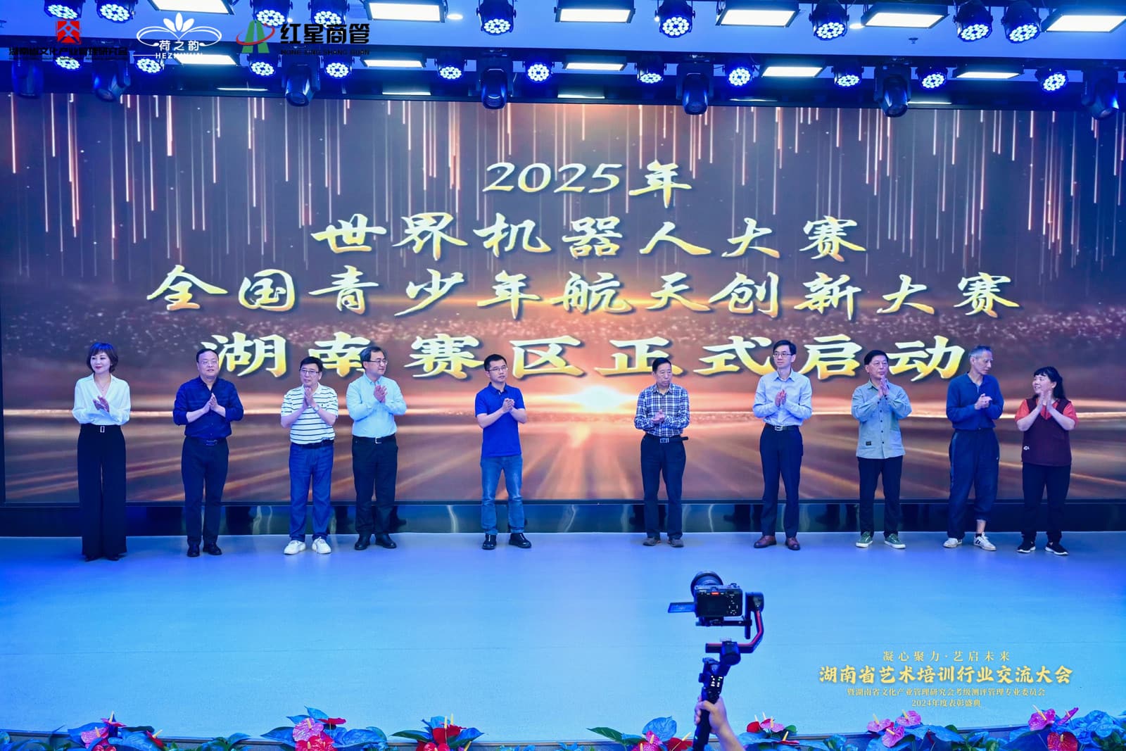 大会期间,湖南省教育厅原纪委书记汤汉文、世界机器人大赛负责人王灿钰等十位领导嘉宾共同按下启动键,正式开启2025年世界机器人大赛和全国青少年航天创新大赛湖南赛区赛事。