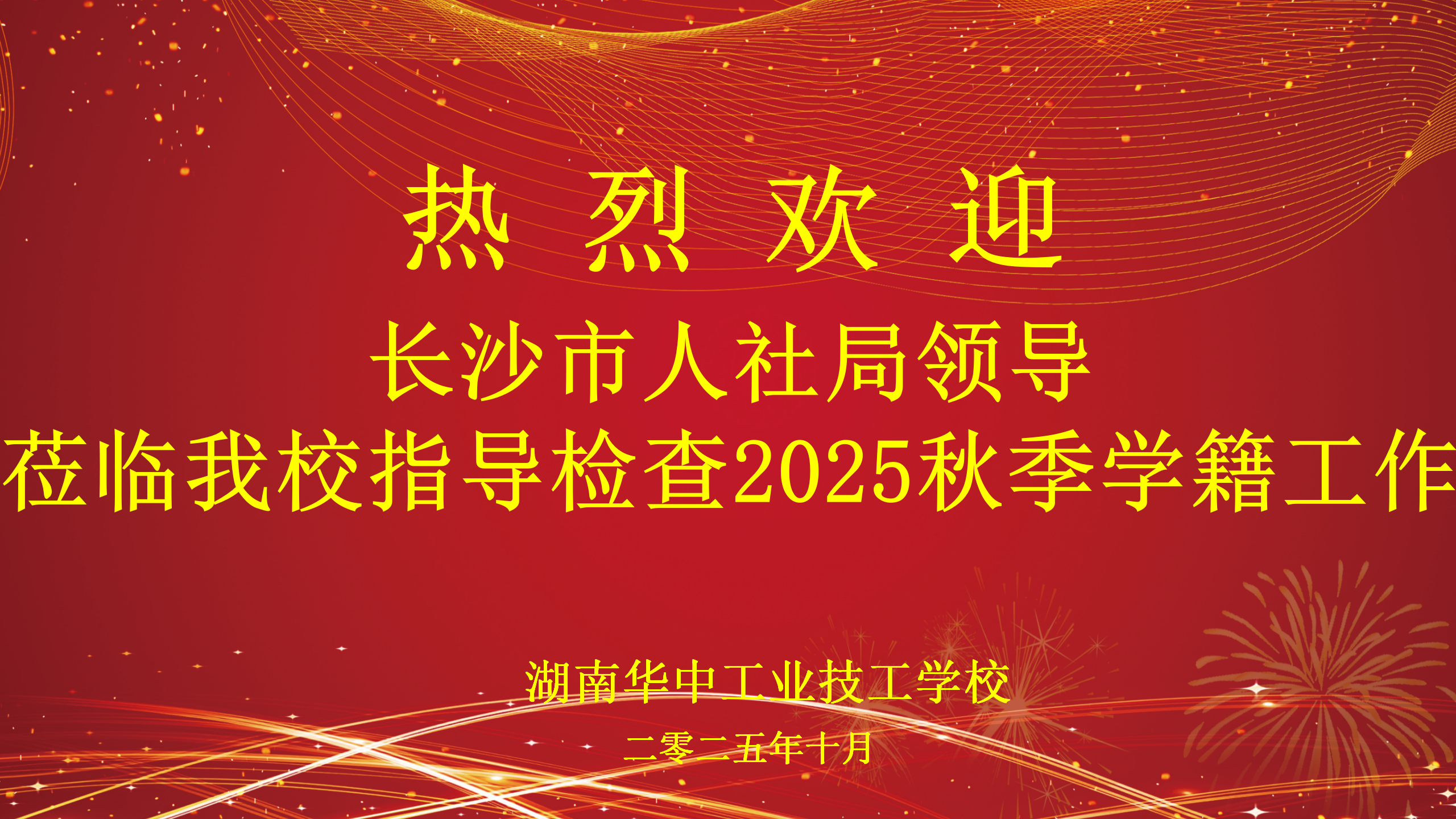 2025年10月,长沙市人力资源和社会保障局领导一行莅临湖南华中工业技工学校,对我校2025年秋季学期学籍注册与管理工作进行专项指导与检查。我校主要领导及相关职能部门负责人热情接待并陪同检查。