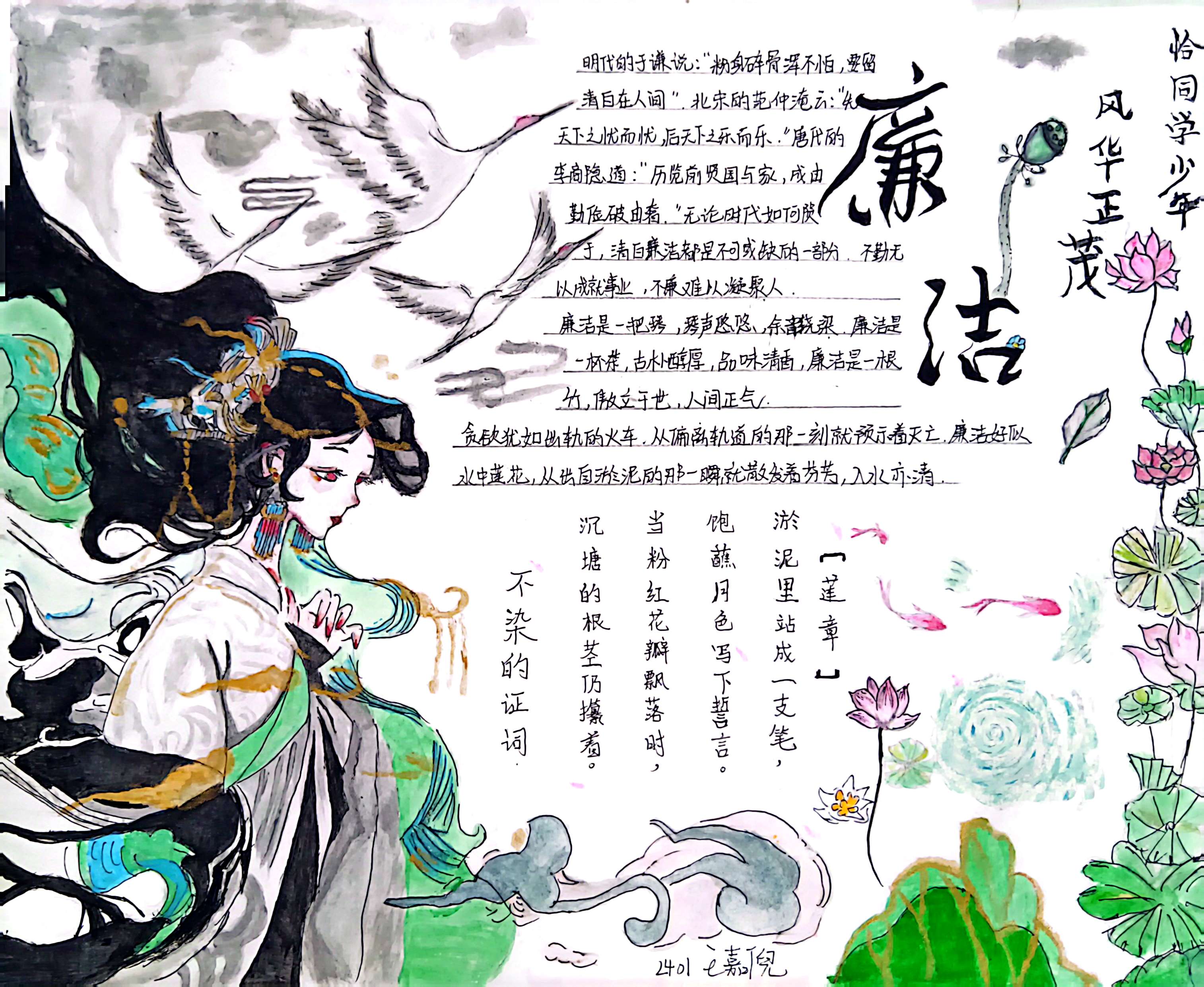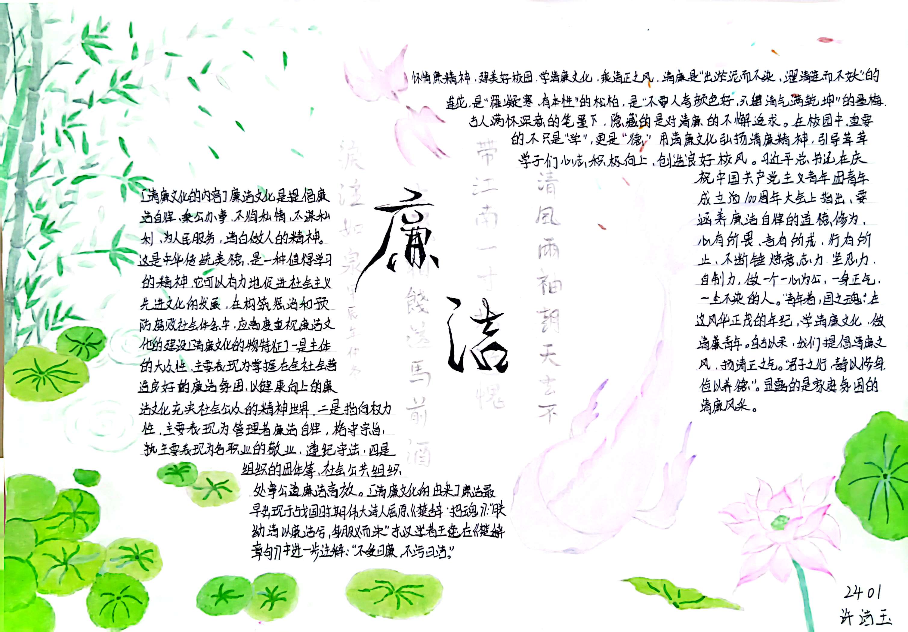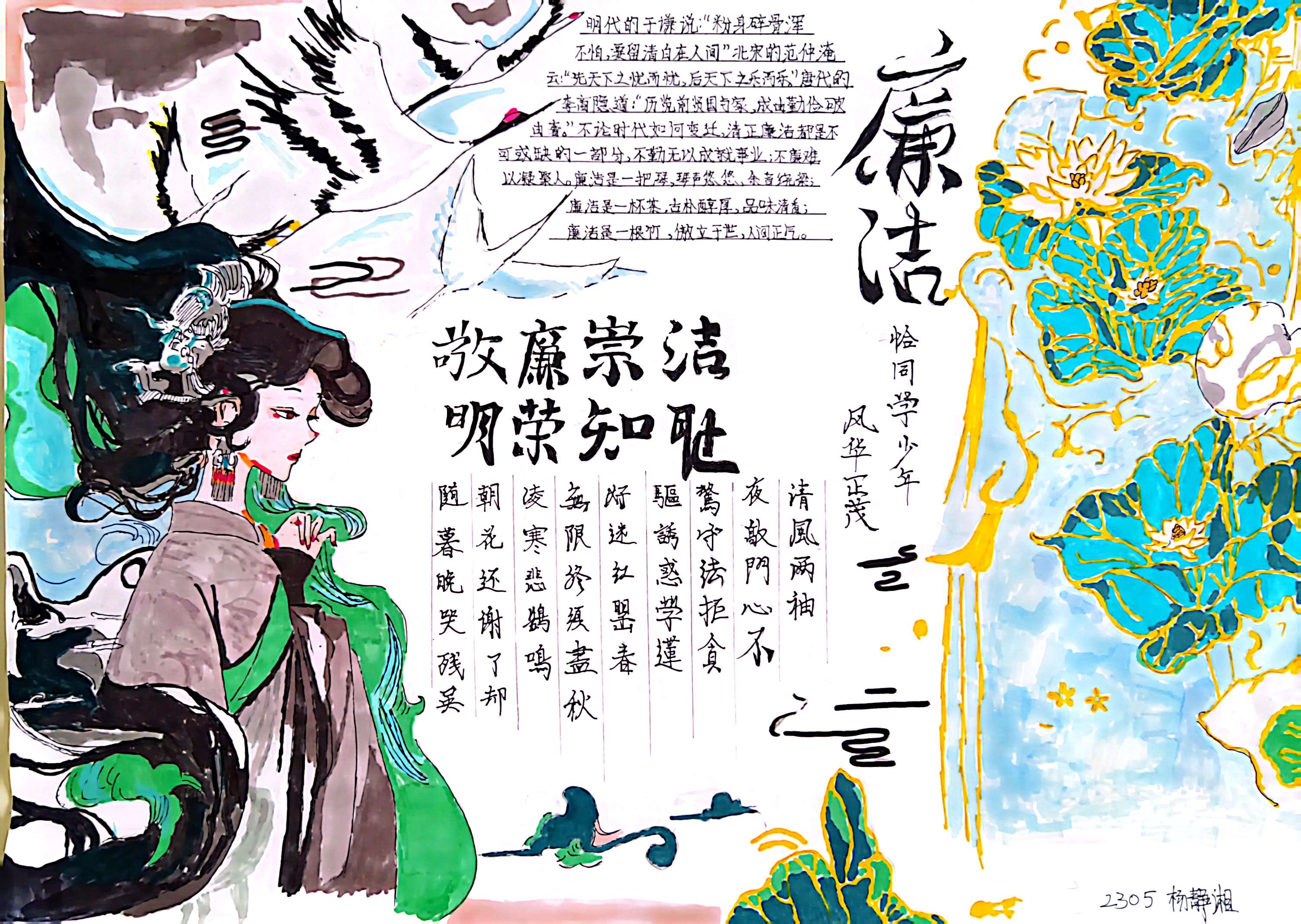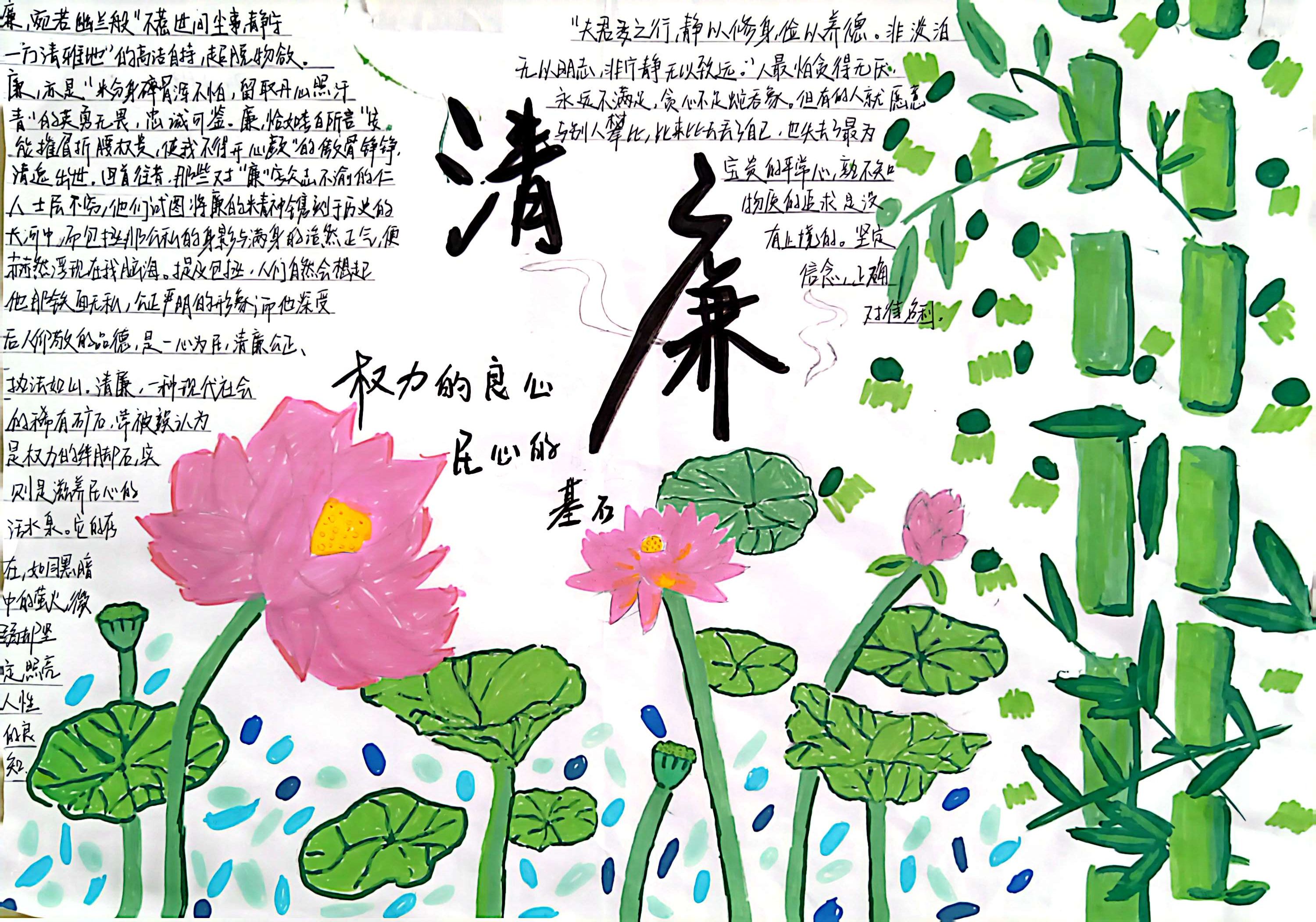 此次比赛活动得到了全校师生的积极响应,一幅幅精美的手抄报成为传播廉洁文化的生动载体。 在创作过程中,同学们充分发挥创意,运用水彩、水粉、剪纸等多种艺术形式,使手抄报兼具思想性与艺术性。有的作品色彩鲜艳、构图精巧,以视觉冲击力吸引观众目光;有的则文字优美、排版整齐,用细腻笔触阐述对廉洁的深刻理解。